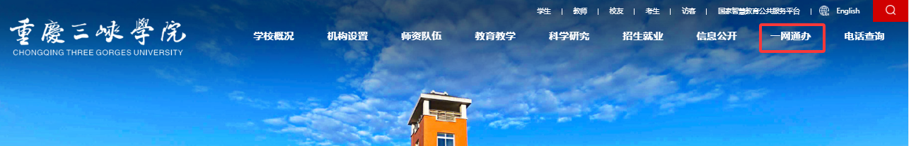 1.从学校主页左上方点击一网通办进入(教职工用工号登陆)